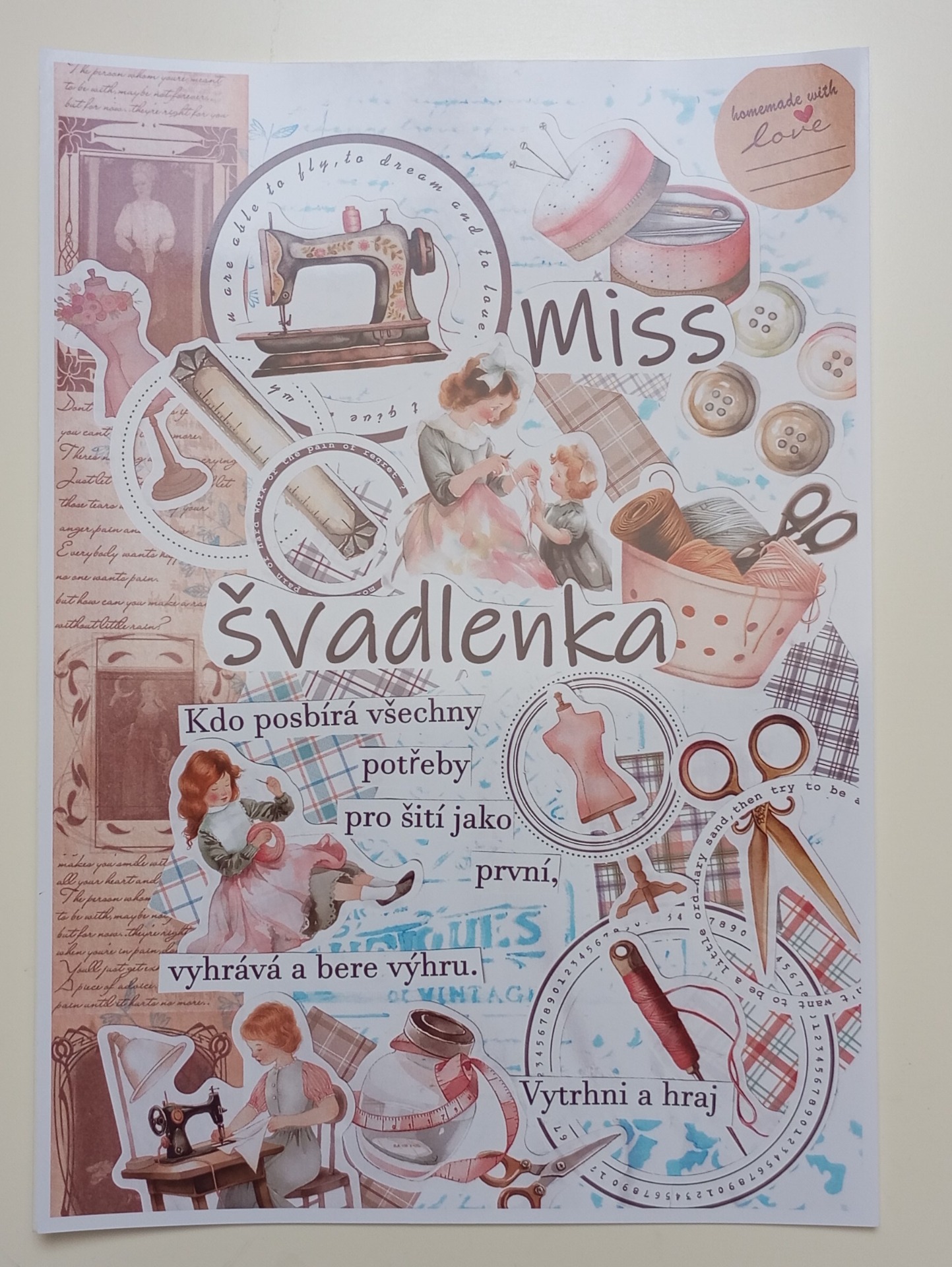 Zábavná strategická hra inspirovaná klasikou "Lodě"! Místo potápění lodí se hráči snaží posbírat všechny potřeby pro šití. Komu se to podaří jako prvnímu, vyhrává a bere výhru. Je určena švadlenkám. ( Špendlíky, nůžky....není vhodné pro malé děti)