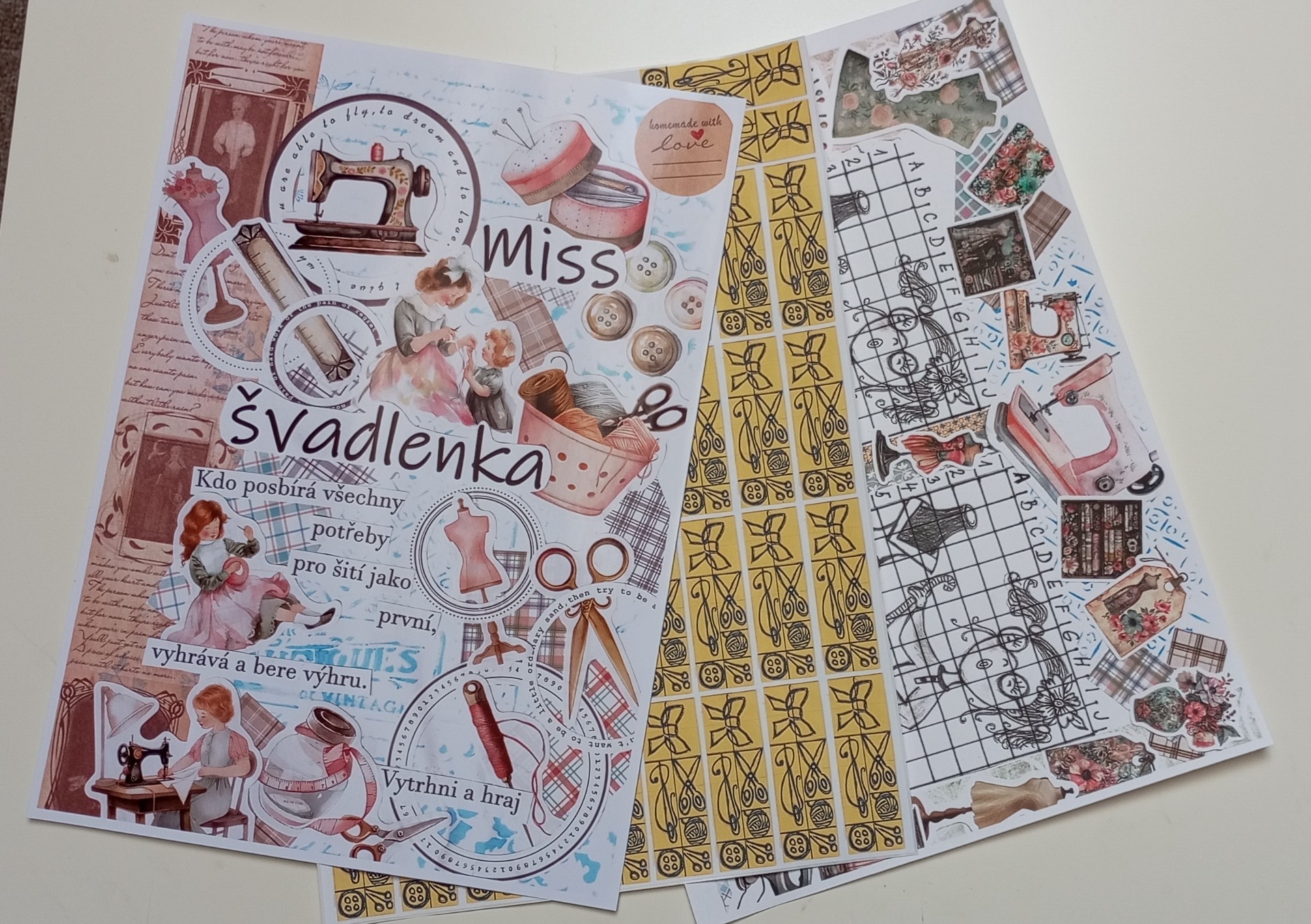 ✅ Samolepící arch s 41ks různých potřeb k šití k vystřižení a nalepení